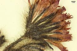 det. F. Schuhwerk s.d. als Hieracium chaunanthes (Nägeli & Peter) Zahn / rev. F. Schuhwerk 1995 als Hieracium chaunanthes (Nägeli & Peter) Zahn (annot.: m.E. zu H. rubrum Peter) / conf. F. Schuhwerk 2003 als Hieracium rubrum Peter / annot. J. Wesenberg 2016: = Pilosella rubra (Peter) Soják