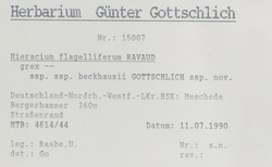 Herbarnummer G. Gottschlich 15007