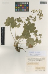 Grundblätter stark wellig und faltig, rundlich, mit sich überlappenden Blattlappen; Teilblütenstände kugelig; Kelchbecher bei Fruchtreife unten breit abgerundet