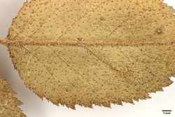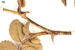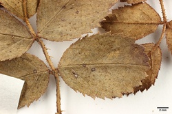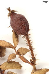 Hoher, ± steif aufrecht wachsender Strauch; kleine Blättchen; Sepalen zurückgeschlagen, abfällig; Blättchen schwach behaart; Blattstiel ± filzig; Zweige leicht heteracanth; Blättchen auch oberseits drüsig