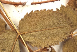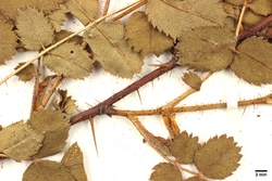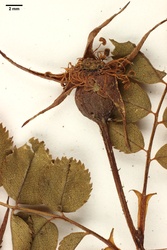 det. C. Schultz als Rosa pimpinellifolia L. / Annot. W. Hasse: nicht f. spinosissima, sondern f. spreta Dsgl., Forma spinosissima hat drüsenborstige Blütenstiele / conf. J. Wesenberg 2014 als Rosa spinosissima L.