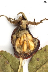 ob angepflanzt?; 7-8 reich fruchtende Sträucher; hochaufrecht bis ca. 2 m, Kelchblätter aufrecht und noch fest haftend; Griffelkanaldurchmesser 0,9-1,5 mm, Ø 1,07 mm; Diskusdurchmesser 2,5-3,0 mm, Ø 2,71 mm; (Messungen an 7 Einzelbutten)
