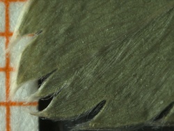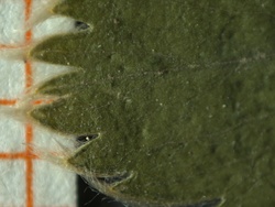 Blattspitze verschmälert/abgerundet, Zähne "herabsteigend"